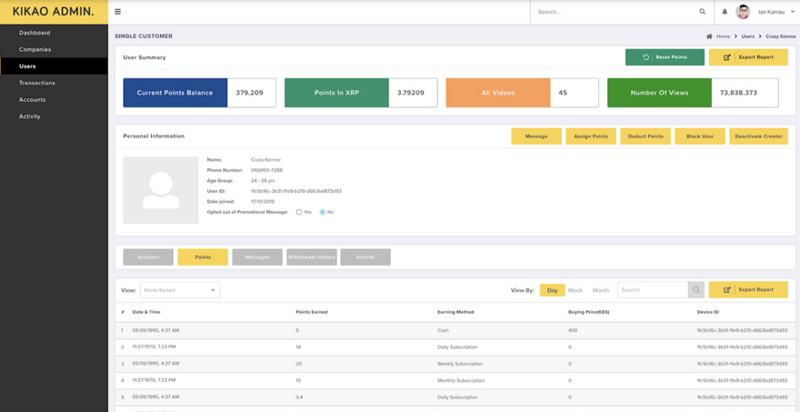 - Points are deducted, commission applied and the user receives the balance in XRP to the digital wallet they registered with us.