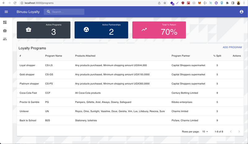 It has been a thrilling six months working on this project, we have learnt how to mitigate unforeseen risk that led to extension of activity timelines. Our biggest win has been completion of the vendor dashboard that is to be installed in supermarkets to run their loyalty programs. In the last few months, we have been working on development and testing usability of the platform on both the vendors and admin interfaces. The tests have been conducted both internally and with a closed user group to review the code and make modifications before deployment.