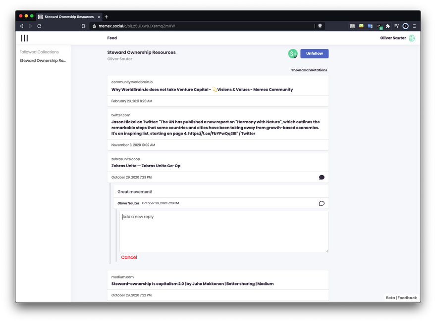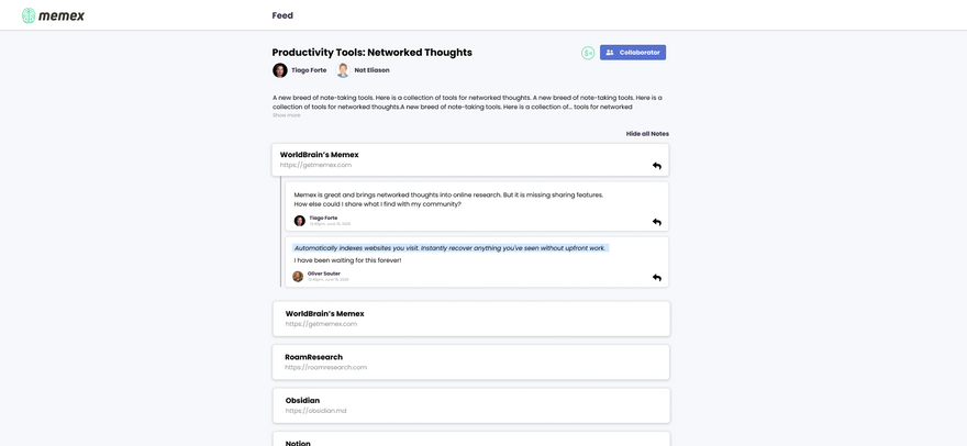 Demo: https://memex.social/c/oiLz5UIXw9JXermqZmXW