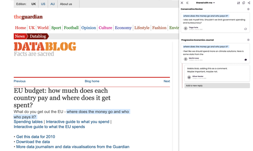 With this, users can see the annotations of other people when browsing around, and reply to the threads there.