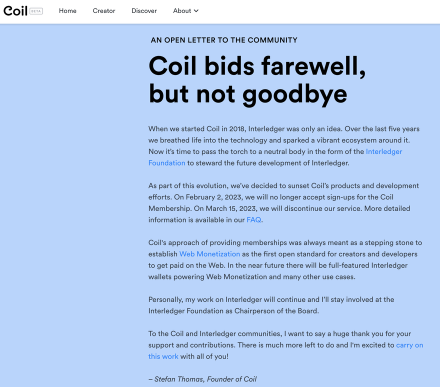Feb 2, 2023: Coil sunsets its products and prevented new users from signing up, thereby derailing our intended workaround for testing