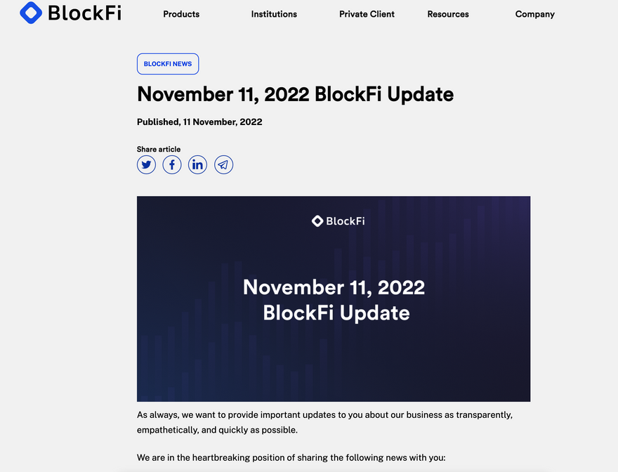 November 11, 2022: BlockFi pauses user withdrawals as a result of the FTX / Alameda collapse. Education and testing budget still held there.