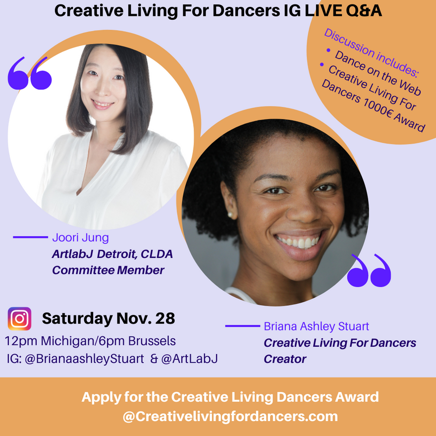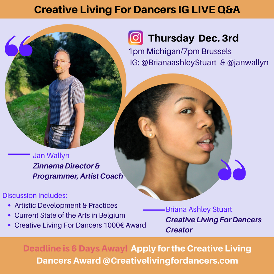 -Arts Funding via The Creative Living for Dancers Award - (4) 1000β¬ Awards to Belgium and Michigan-based Professional Dance Artists to create their own digital dance projects.