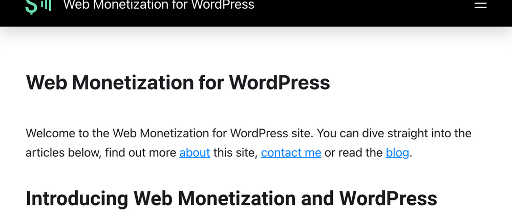Of course, it's a WordPress site itself, and web monetized. In the content series I'll cover everything from introducing Web Monetization, why it's such a strong fit for WordPress users through to the practicalities of how to using Web Monetization within a WordPress site.