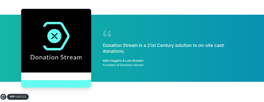 Donation Stream leverages web monetisation and the XRP ledger to allow donors to use cryptocurrency in the real world. Examples include, donating to a cultural location as you spend time on their site or streaming to a local musician as you listen to their music. The possibilities for connecting the physical with the virtual are endless.