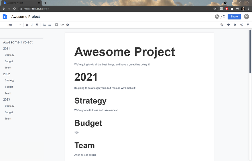 So imagine you're looking at your favourite collaborative doc, perhaps you are planning a project with several others, and it looks something like this: