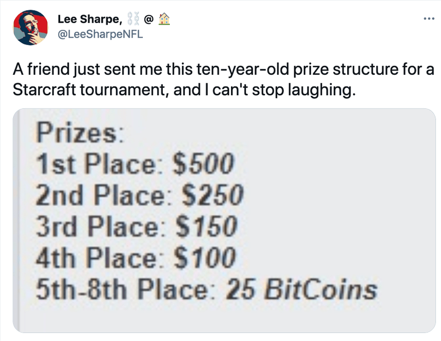 OMG that Tweet is hysterical. Would love to know if any 5th-8th place finishers sat on their bitcoins, b/c if they did....