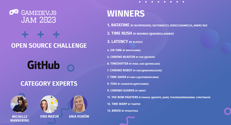 The Gamedev.js Jam 2023 was a success, with record breaking number of participants joining, games submitted, and votes cast. We had six extra challenges with dedicated rules, experts, and prizes for each.