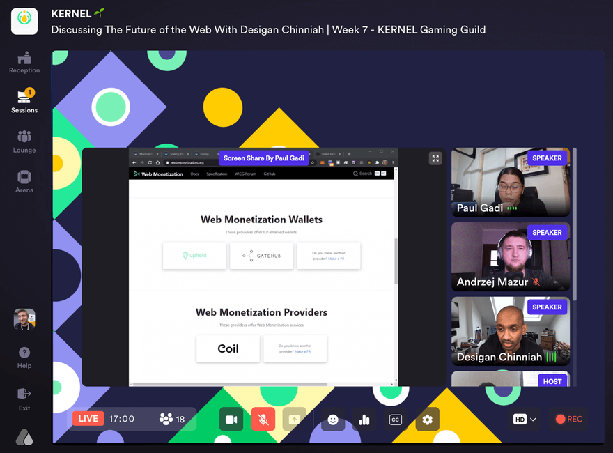 Kernel Gaming Guild had run since January, through February, and ended up with the last module at the beginning of March - I wrote a short summary about all the sessions we had. And yes, I mainly talked about HTML5 games and Web Monetization.