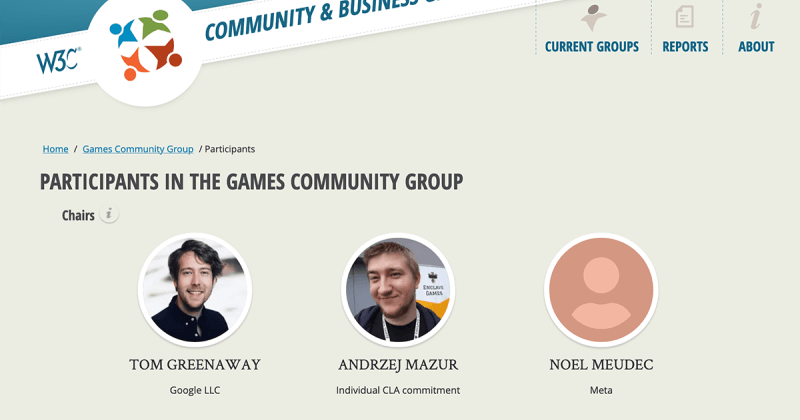 I’m excited to announce that I was accepted as a co-chair into the W3C Games Community Group, joining Tom Greenaway from Google and Noël Meudec from Meta , with the support of François Daoust from W3C.