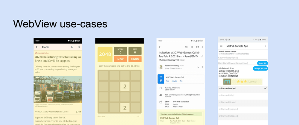 We had three speakers this time: Alicia Nie from Tencent , Andre Bandarra from Google , and Jacob Clark from BBC. Alicia showed us WeChat mini game runtime, which is specifically optimized to run games. Andre talked about the ways web content can be embedded on Android: through WebView , Chrome Custom Tabs , and Trusted Web Activities. WebLayer was mentioned as something that might be useful in the future as well. Jacob spoke about BBC’s cross platform HTML5 runtime that works for both the native platform and the web, mentioning persistent storage as something problematic.
