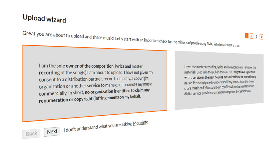 As of now, FMA musicians can upload their original music via a new upload wizard. One that is more efficient and feasible and puts emphasis on all relevant details needed including the importance of the chosen Creative Commons license.
