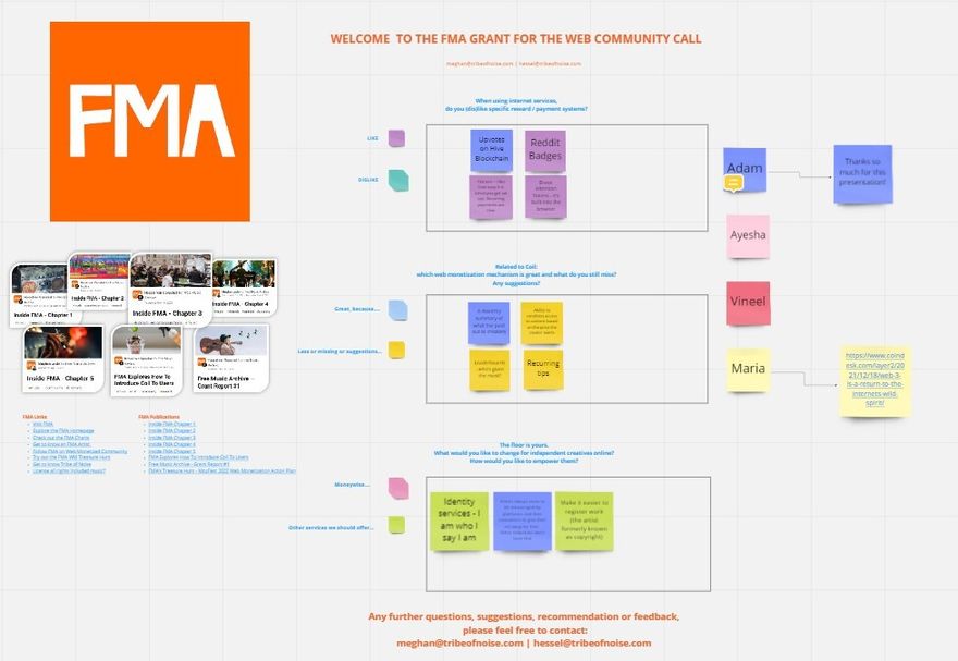 However, before we hosted our own FMA Artist Community Call, we were eager to participate in our first Grant for The Web community call for FMA, where we were able to introduce FMA to new grantees, share the FMA journey and lessons learned.