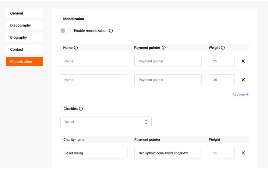 With the new upcoming template for artists and learning from the web monetized community, we were able to integrate a more efficient and user-friendly monetization wizard for FMA artist to add their payment pointer on FMA.