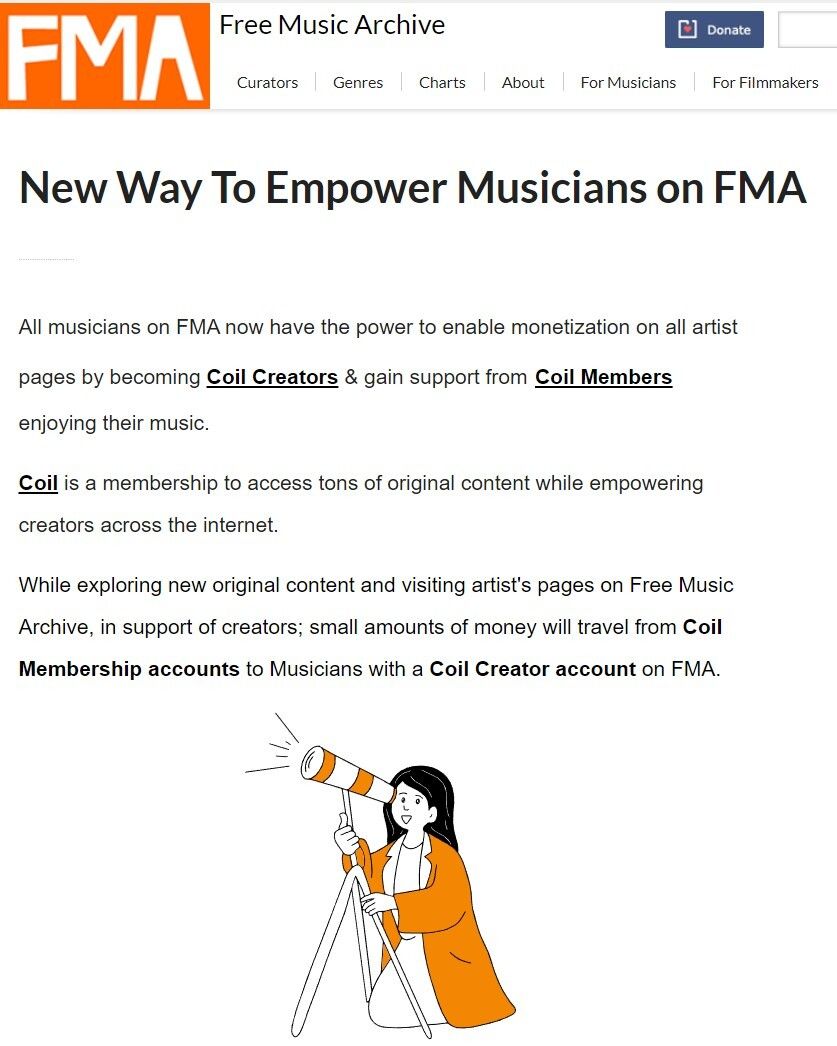 As we continue to onboard more FMA musicians to Coil and putting together a strategic plan to communicate Coil to FMA listeners, with the past FMA research and the Coil Help Center, we published the FMA Coil Page for new users and creators to follow with instructions and relevant links.