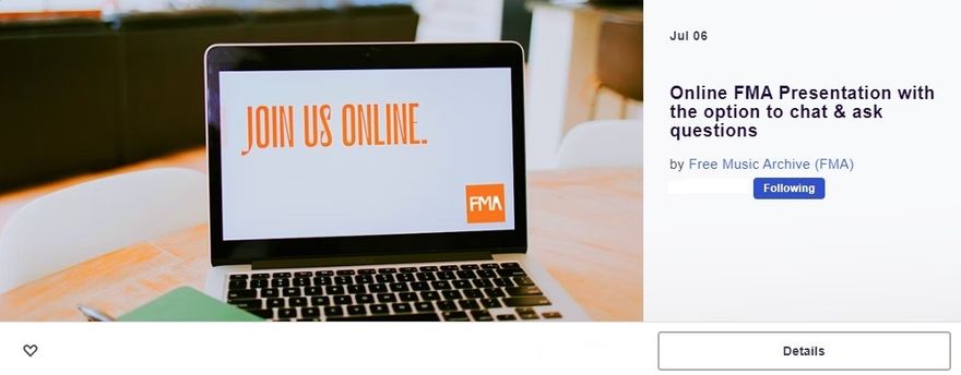 After hosting an FMA Community call with Grant For the Web, it was time for our team to host an FMA presentation for FMA artists to join and ask questions. We didn't have to think twice where to host the FMA presentation as we have been participating in other community calls on Eventbrite.