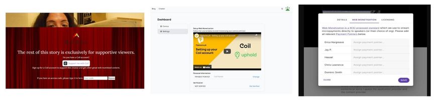 Coil is a fun way to enjoy original (premium) content from journalists, musicians, photographers, game developers, podcasters and many other creatives. With your Coil Creator account enabled in your browser, small amounts of money will travel from your account to the content creator. All-you-can-consume-content. You never pay more than $5 for a month access to tons of creative content while supporting the creators. More information? https://coil.com