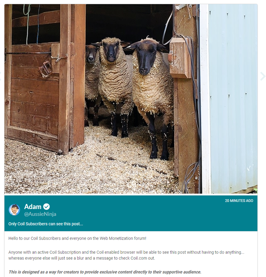 Here is that same post that anyone with an active Coil Subscription and the Coil browser enabled (they don't even have to be logged into gFam) see: