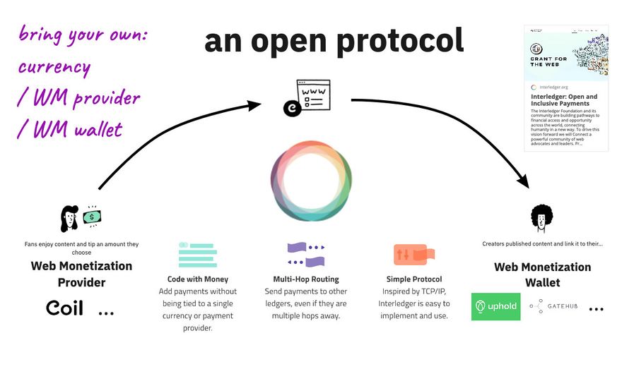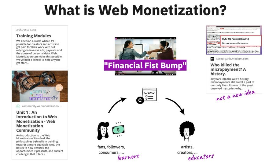 We went over issues with current business models, the high level idea of WM, Web Monetization Providers, Web Monetization Wallets, streaming, tipping and the Interledger Protocol.