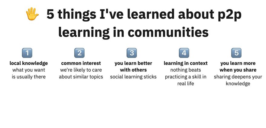 Next up I gave a quick introduction on peer2peer learning, based on our experiences testing Gradual with various communities. Everyone also shared things they could learn from their peers online.