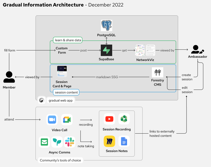 Our approach to learn from the behavior of members of this community has informed us about how to best serve the community and adjust our product design accordingly. We have been able to streamline user input by adding an important extension to the Gradual tooling in the form of a flexible database and authentication solution called Supabase.
