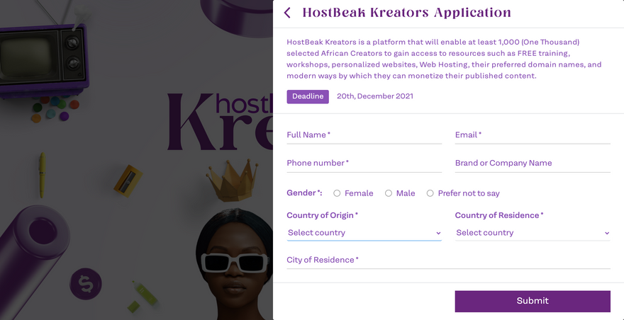 We will help African creators with personalized websites, their preferred domain name, web hosting and the ability to monetize their content on the web all for FREE!