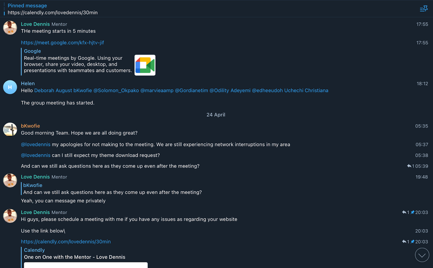 Another notable mention is Love Dennis, who decided to share a Calendly link for 1-on-1 Mentoring sessions for those who missed LIVE Meetings with his mentees.