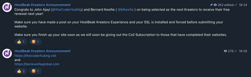 We also decided to renew Hosting for those who perform outstandingly in the coming months (We will decide this based on website traffic, content, consistency, etc).