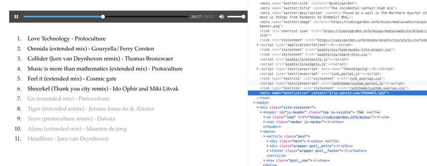 Ian Forrester who works for BBC R&D has been experimenting with Hyperaudio Lite to Web Monetize DJ mixes so the artists can be compensated, he's calling it WebMix.
