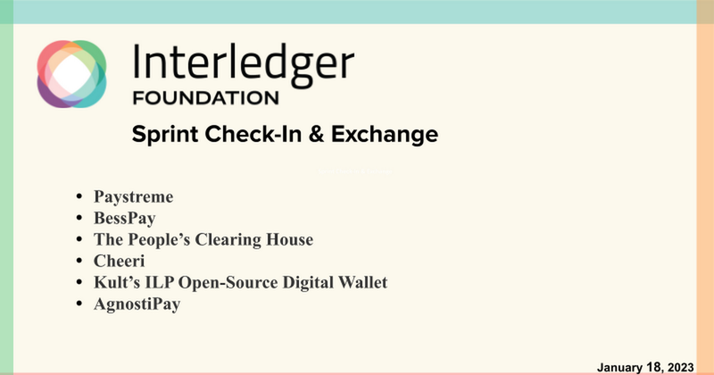 The Interledger Program team held two Sprint Check-In & Exchange sessions in January which provided the grantees with the platform to exchange ideas and best practices as they seek to implement their respective projects.