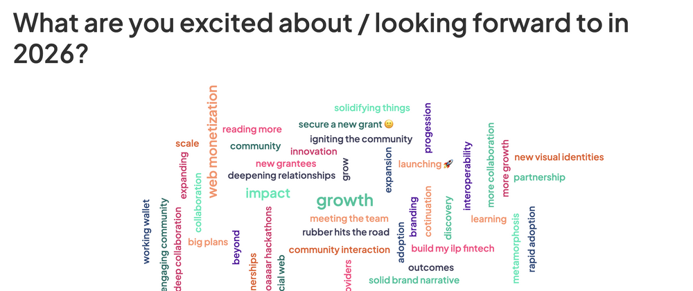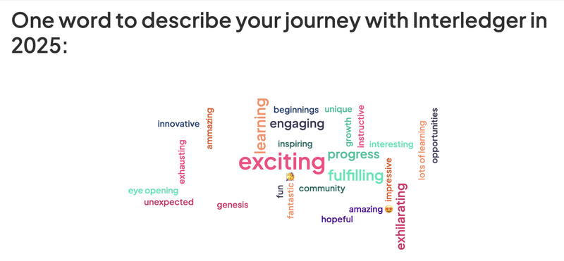 There were some incredible inputs, ideas and enthusiasm for the questions, "How would you like to contribute in 2026?" and "What would you most like Interledger Foundation to do more of in 2026?". You can read more about the responses here.