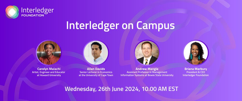 This event is part of the Interledger Salon online event series - bringing you the latest insights from experts in digital financial inclusion. I am pleased to introduce the esteemed panel who will join me on Wednesday, June 26, 2024, at 10:00 am (EST) to speak about Interledger on their respective campuses.