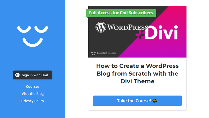 Through the scholarship I will equip five lucky applicants with a one-year subscription for both Coil and the WordPress Divi theme, which will allow them to access my video course and get started with setting up their own blog on WordPress with Divi.