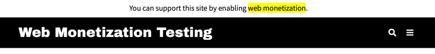 We accomplished this at the same time. The most commonly used Omeka S themes should work with the Web Monetization module out of the box. There are a couple of ways to include a web monetization notice on the page: either as a block in a specific location on a page, or as a banner on all pages. Users can also customize the themes directly.