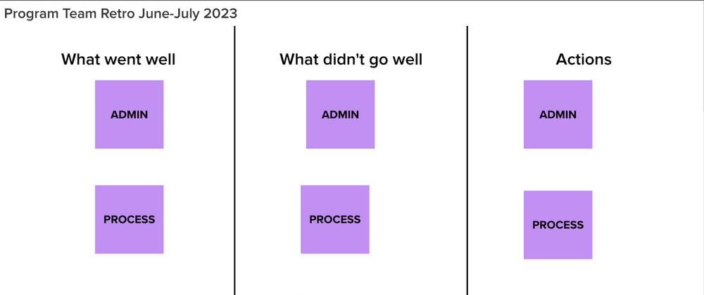 We use a Mural board with three different tables, what went well, what didn't go well, and actions. Once everyone is settled in we give the team about 5 to 10 minutes to reflect and write down a keyword or a short sentence on a digital sticky note on what we can recall from that specific time. Once everyone is done we arrange the sticky notes into the categories.