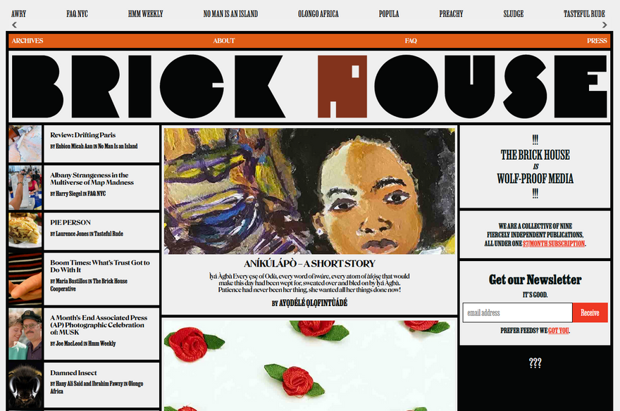 Our grant permitted Brick House publishers to fund new journalism, art and essays from all over the world. A small selection of recent favorites: