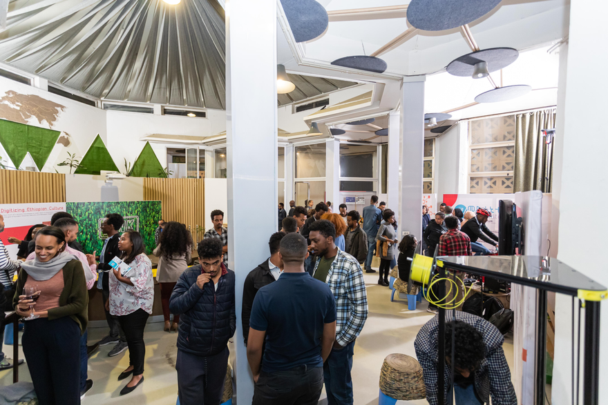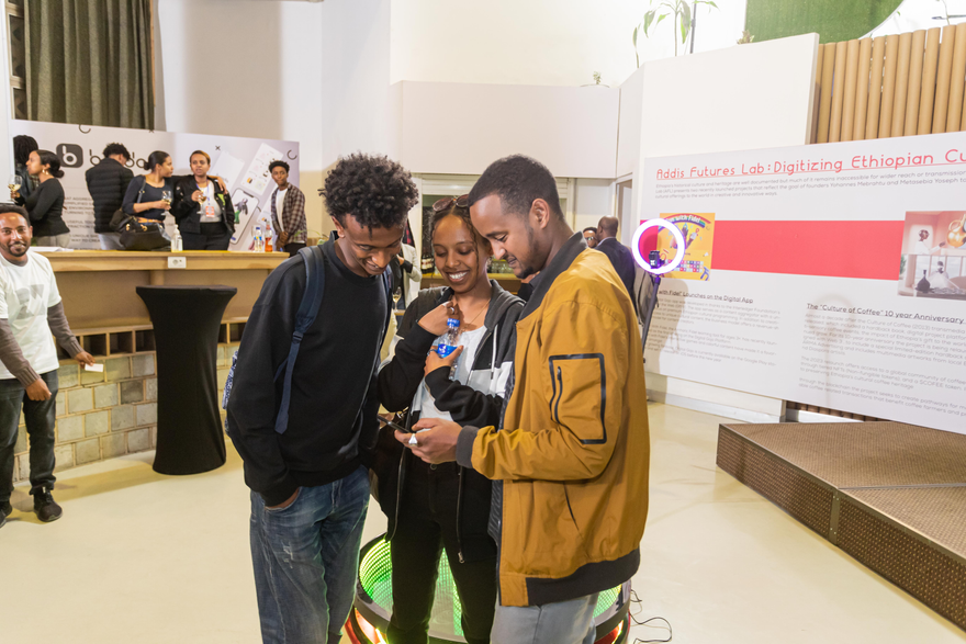 Guests exploring the mobile platform at DG's soft launch event in partnership with Design Week Addis Ababa (DWAA)'s Tech Day.