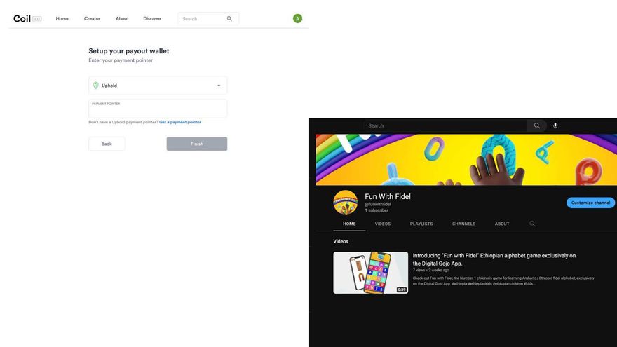 Attempts to establish a payment pointer for project YouTube channel