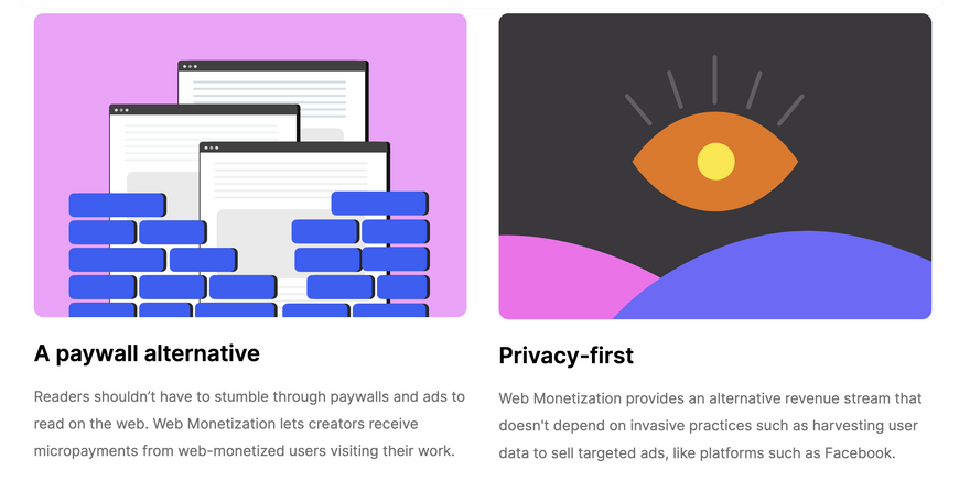 Initially at Prototypr we were trying to make Web Monetization relatable by calling it an 'ad-alternative', or 'ad-free reading' as suggested in this article from @uchibeke , but I find there seems to be some negative connotation with mentioning 'ads'.
