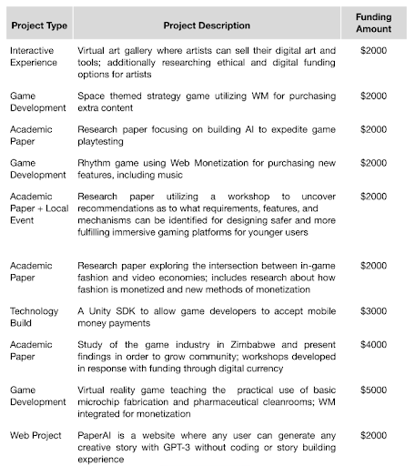 Update - Early in the program, the IGDA Foundation sponsored the Global Game Jam which included a Web Monetization standard as an option for jammers to incorporate in their games. Following up with this event, the IGDA Foundation intends to host a second game jam specific to Web Monetization with cash prizes in August.
