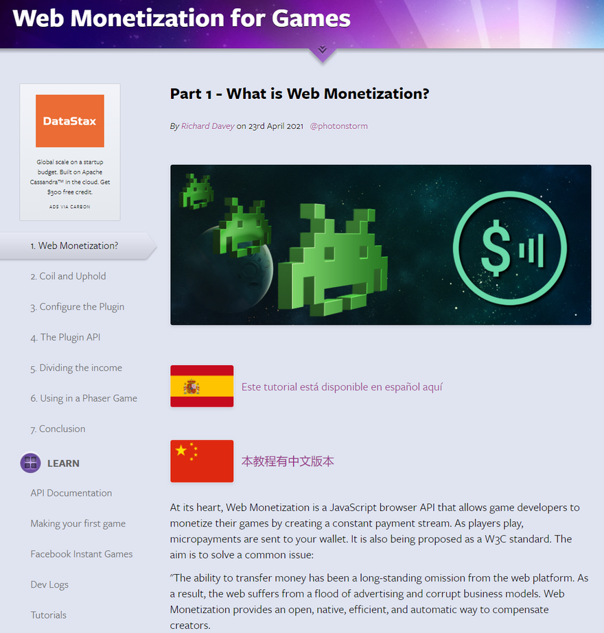 You can find the tutorial here: https://phaser.io/tutorials/game-web-monetization but we also included the original markdown files inside the GitHub repository, as well.
