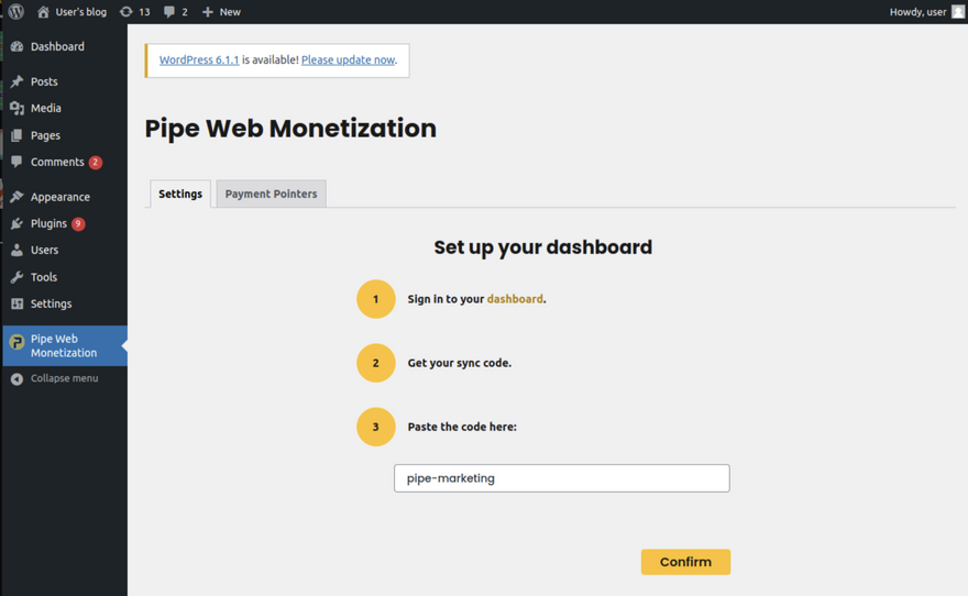 Another key technical challenge we faced while building the PipeWebMonetization plugin was developing a custom dashboard inside Wordpress. The dashboard had to be intuitive, easy to use, and provide a smooth way for setting up the plugin installation and integration with the PipeWebMonetization data tracking dashboard. We had to invest a lot of time into developing a user-friendly interface, which is capable of setting payment pointers, revenue sharing and enable paywalls per content.