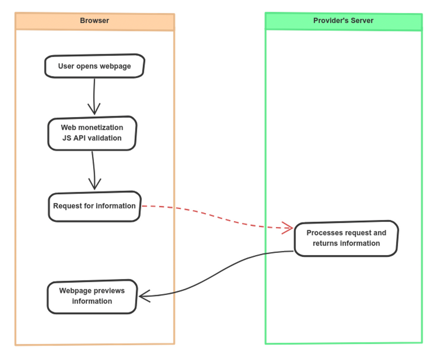Imagine a photographer trying to provide exclusive photographs (provider) to the users paying through a Web Monetization based subscription (for us, Coil). With the current system, he fetches the data through an open API and then hides it on the frontend using JavaScript or CSS.
