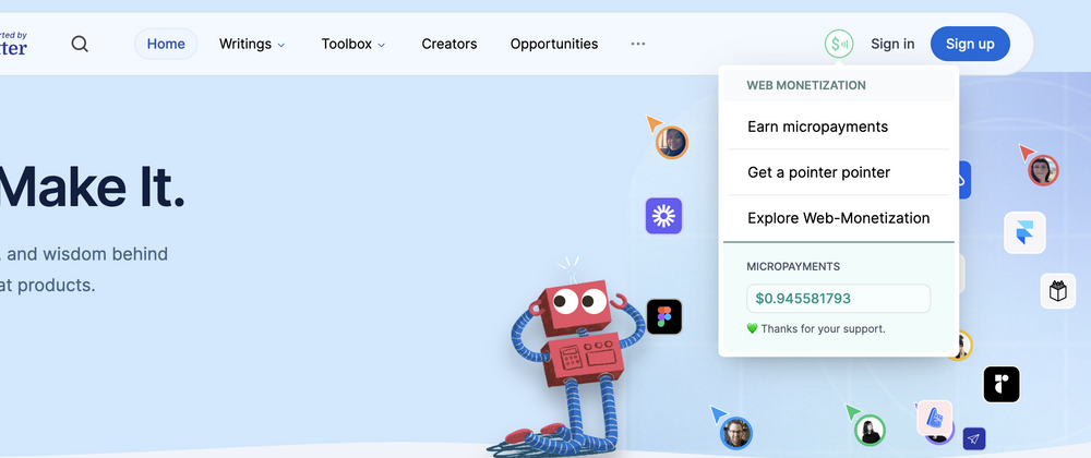 Being able to distribute funds to creators based on the quality of content is always going to be a key mission for Prototypr, and with further development, Web-monetization can be a great reward/distribution system.