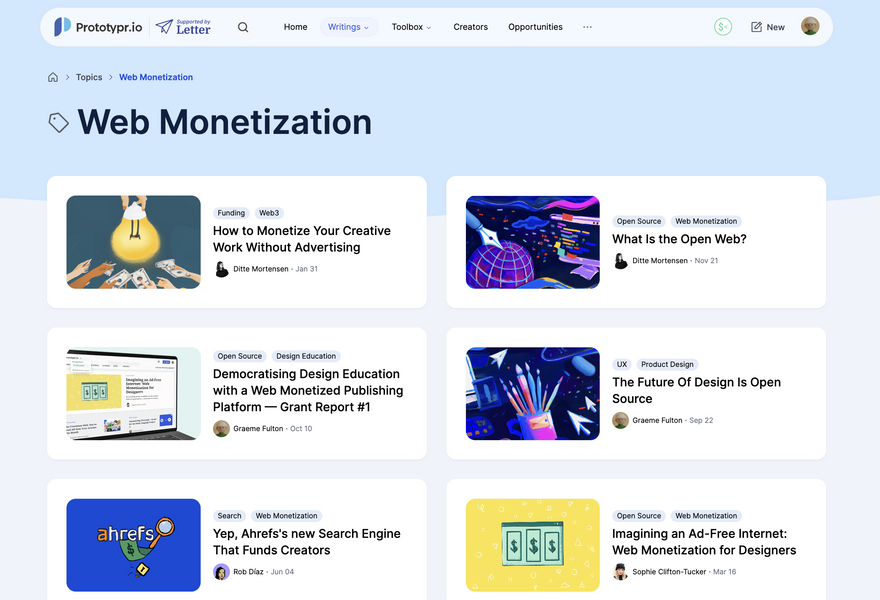 The latest Web-Monetization updates, articles and features on the Prototypr platform: