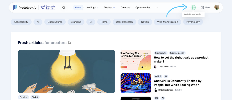 Here I've listed the latest Prototypr platform updates that were made to onboard people to Web-Monetization, followed by my learnings about what would drive people to adopt and support an open web. So skip to the second half if you're interested in those realisations!