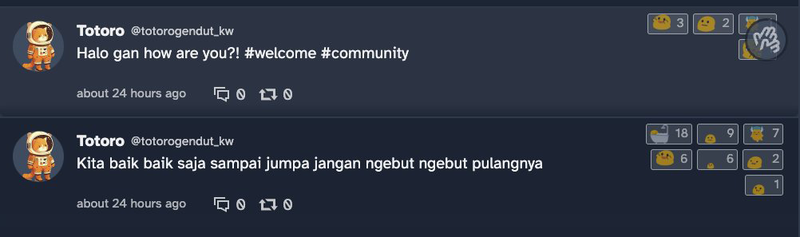 There's a plan for Web Monetizaton in this: later on users can set payment pointer so they can stream revenue when people engaging with their tweets or forum post the made. It was pretty simple at that front. The real challange however come from another (that I thought pretty rad) freature that I'd like to call emoji clapping. It is a emoji "like" button like any other reactions button in other social media like Discord but instead of toggling a button you clap (like clapping mechanic in Medium website). So one user can give multiple emojies and claps on them multiple time because I thought sometimes one thumb up might not enough - sometimes you just want to slap multiple thumbs up, even thousands if you can (ignoring the fact that is's phyiscally imposible in real life), just so you can express how you enjoy tweets or contents people made. Now here's the Web Monetization comes into place: or rather, it has more to do with Interledger payment than Web Monetization API, as emoji claps can be used as "currency" to reward creators. There wasn't a solid final plan on how to do this but the general idea is that by the end of the month or so you can setup a tipping budget (either by subscription or one time payment) that split tips to creators based on how much you spend mouse clicks clapping emojies on them. Clap clap clap. Money money money.