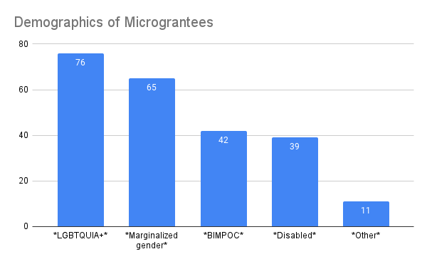 We kicked off our microgrant program last winter and had a strong first wave of applicants. Over the course of the spring and summer continued to promote the program at conferences and on social media. We’ve since approved and disbursed 100 microgrants of $300 each, all going to game designers of marginalized identities. The majority of our grantees have finished their games and many others are in the late stages of playtesting. We’ll remain available to help the remaining designers finish their games.