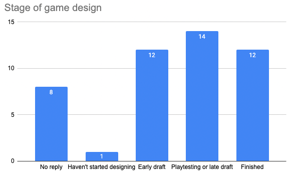 Here is the current stage that the grantees’ games have reached: