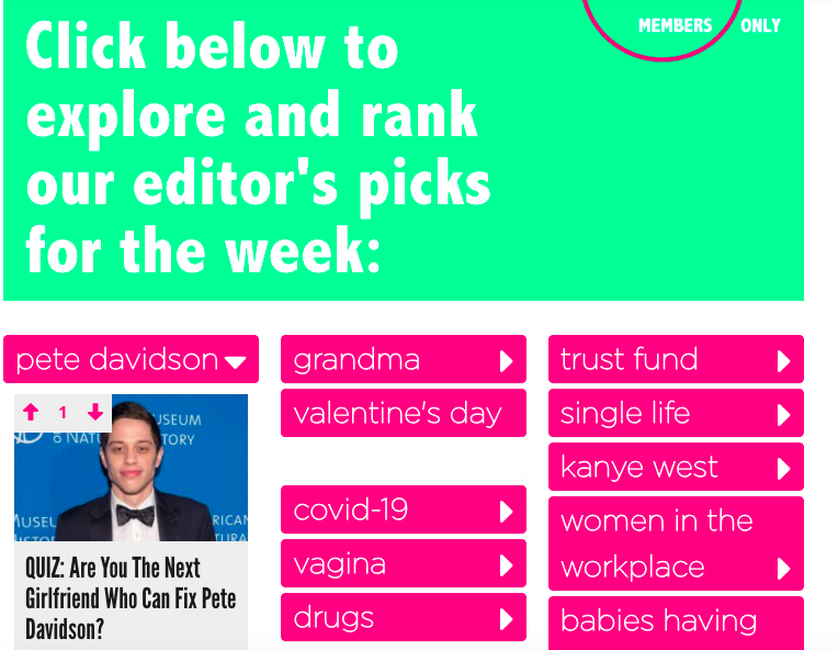 Whew, what a project! We're so excited to fully launch our new and ever-growing "Members Only" section, designed for our most devoted readers who join Coil and subscribe to Reductress to engage with our content in a totally new way. For nearly 8 years, readers have only been able to engage with our content based on what's most recent, specifically searched for, or what we share on social media. But we've created a section where our editors can curate content based on authors, tags, and even exclusive content just for our subscribers, with the ability to upvote/downvote headlines so that you'll see our most popular stuff, as well as our deep cuts. This, to us, is just a jumping off point for a larger, bigger experience for our fans, and we're so excited to finally get it out into the world.